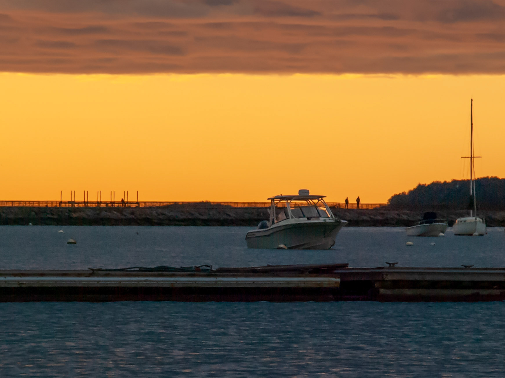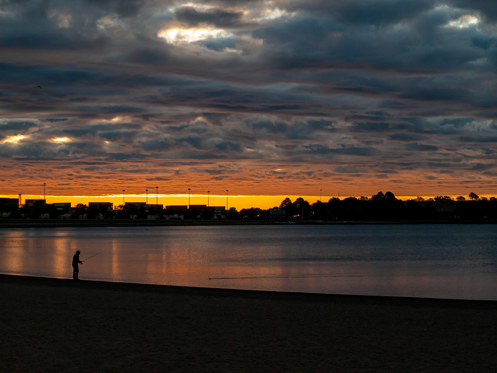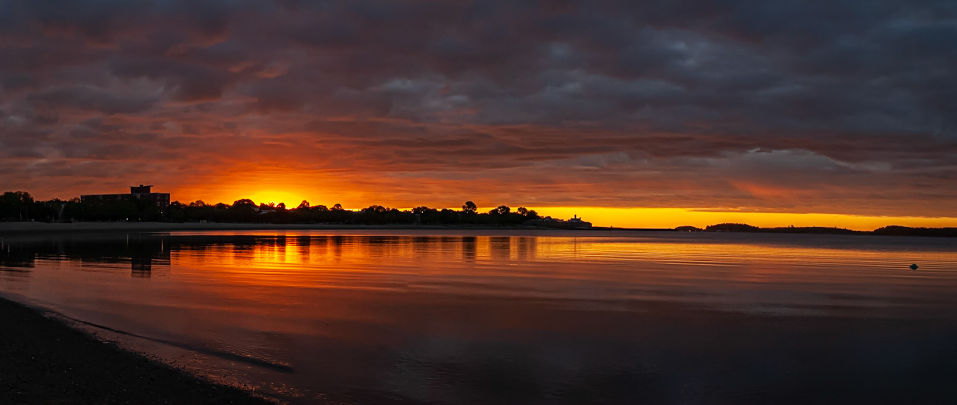 A partial annular solar eclipse at sunrise as seen from the Chestnut Hill Reservoir, with the Boston skyline in the background. Captured on June 10, 2021.